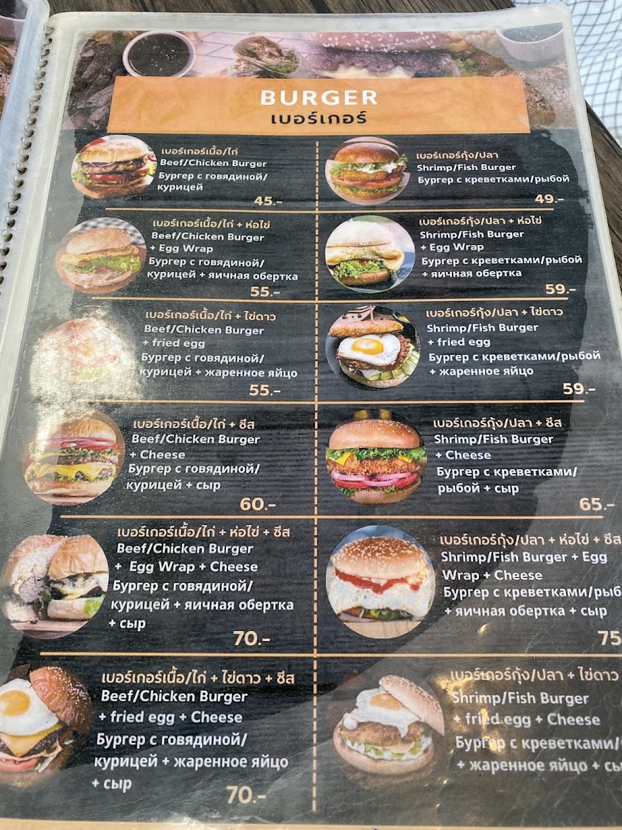 Diverse Menu: Options range from hearty burgers to local Thai dishes like Tom Yum fried rice, ensuring there's something for everyone.